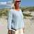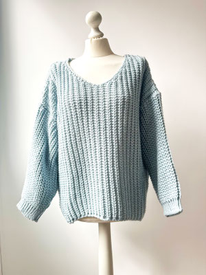 Grobstrick-Pulli in HELLBLAU. ONESIZE, Vorne kürzer, hinten länger geschnitten. V-Ausschnitt.