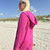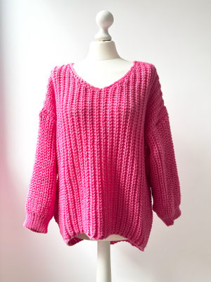 Grobstrick-Pulli in PINK. ONESIZE, Vorne kürzer, hinten länger geschnitten. V-Ausschnitt.