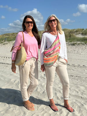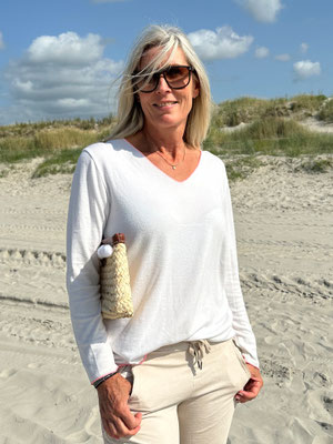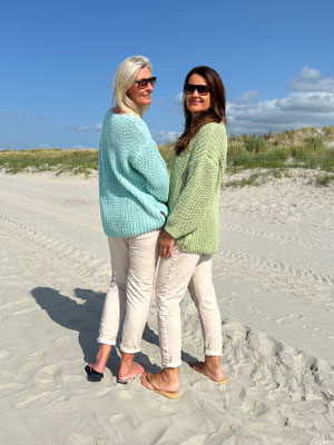 FEINSTRICKPULLIS in 4 Farben. WEISS, CREME, TAUPE, GREIGE. Neonfarben umkettelt und mit einem Seestern auf der Rückseite.