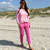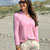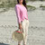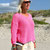 FEINSTRICK-PULLI in ROSA, in NEONORANGE am Ausschnitt und Ärmeln umkettelt. SEESTERN in NEONORANGE auf der Rückseite.