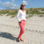 CREME-JOGGPANT. Mit seaSTARbag-Logo. Seitlich leicht glänzender Streifen. 95% Baumwolle, 5% Elastan.